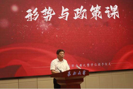 6月8日下午,在武汉校区学术报告厅,永利3044集团官网经理江厚顺为2023届全体毕业生讲授形势与政策课。