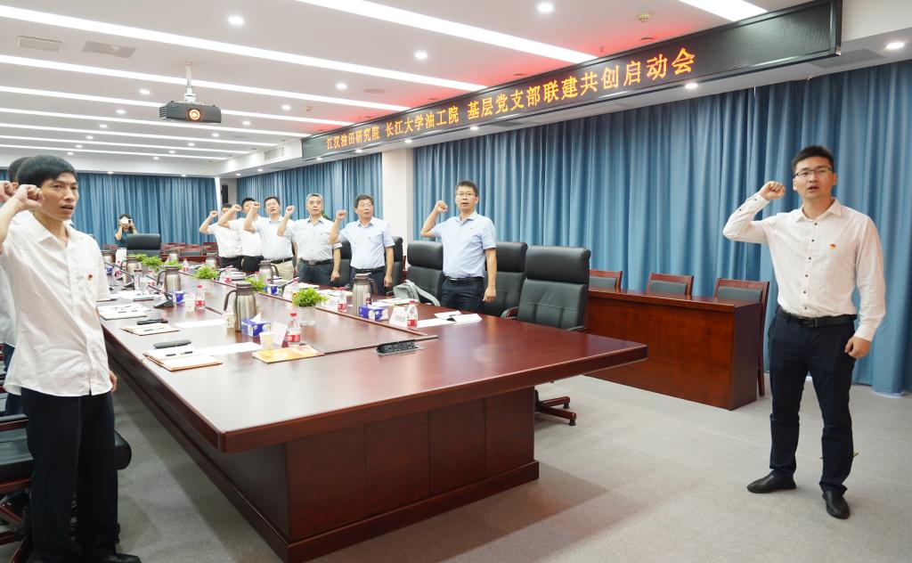 (通讯员 周晓峰)为进一步推进校企结对共建,切实发挥党建引领作用,6月30日上午,永利3044集团官网油气田开发系教工党支部与江汉油田勘探开发研究院规划研究所党支部联建共创启动会暨“牢记嘱托再立新功 产学携手再创佳绩”支部主题党日活动在江汉油田勘探开发研究院举行。研究公司党委书记胡心玲、副经理荣焕青、院专家、联建支部党员代表,公司党委书记张光明、经理江厚顺、副经理李忠慧、联建支部党员代表等20余名同志参加,研究院规划研究所党支部书记康波主持。