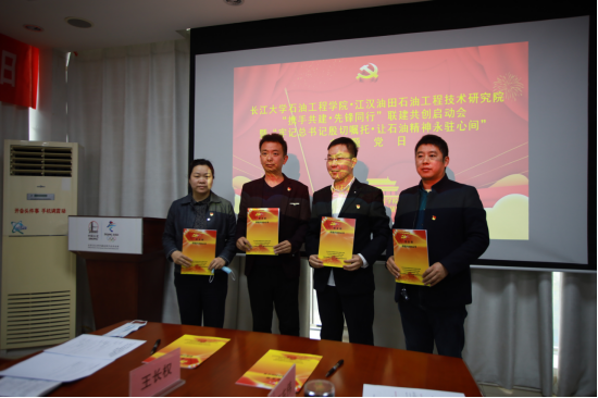 江汉工程公司党建专家李彦宣读党支部联建共创协议书,永利3044集团官网油气田开发工程系教工党支部书记王长权、油气井工程系教工党支部书记吴惠梅、研究生第一党支部书记史永波和江汉工程院储层改造党支部书记高东伟签订联建共创协议书,并依次作表态发言。