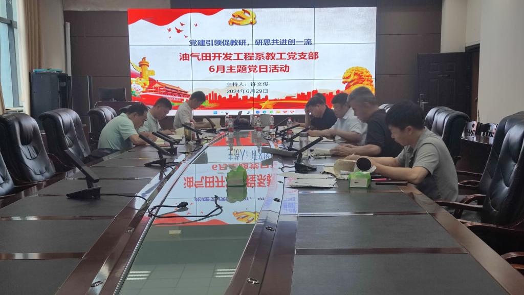 (通讯员:白振玮 许文俊)6月29日上午,油气田开发工程系教工党支部在石油科技大楼B113召开了“党建引领促教研,研思共进创一流”6月主题党日活动,由支部书记许文俊同志主持。