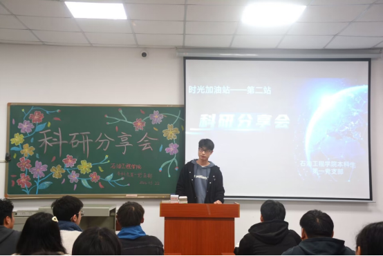 苏文林同学从“如何扮演好科研组中的角色”的角度出发,向同学们讲述了科研团队中的角色分工及其各自的职责要领。他强调科研项目的有序开展不仅需要组长和组员找准自身定位、明确自身职责、扮演好各自的角色,而且也需要重视团队成员之间的协调与配合,将小我融入大我,培养出高度的责任感和归属感,这对接触更多的合作事项乃至未来的职业发展有着重要意义。他还指出科学无国界,但是科学家是有祖国的。我们长大学子无论何时都应爱石油爱祖国,争做“六有”新青年,无论从事任何活动都应以国家为重,为国家富强民族复兴贡献出自己的力量!
