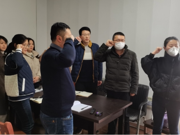 活动中,支部书记徐鹏介绍了本月主题活动的背景和活动内容,带领全体党员重温入党誓词。在集体诵读党章第二章环节中,肖娜、罗娟、许诗婧、刘静华等几位党员同志带领大家集体诵读了党章第二章,加深了大家对于党章的认识。