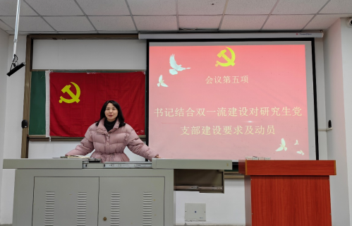 最后,刘娥着重强调一流学科要配备一流党建,并指出三点主要内容:一是以专业重新划分研究生党支部,加强支部管理和激发支部活力;二是作为党员要起到模范带头作用,遵纪守法,遵守校规校纪;三是学习强国亮思想,主动坚持每日学习强国学习,形成争先创优的良好学习氛围。