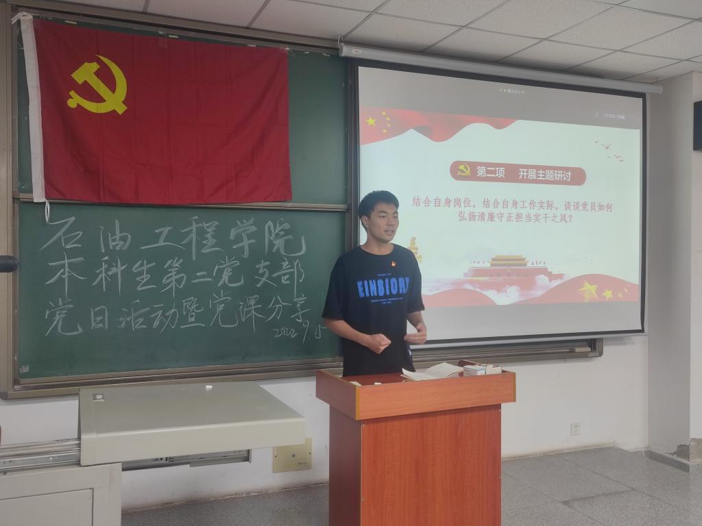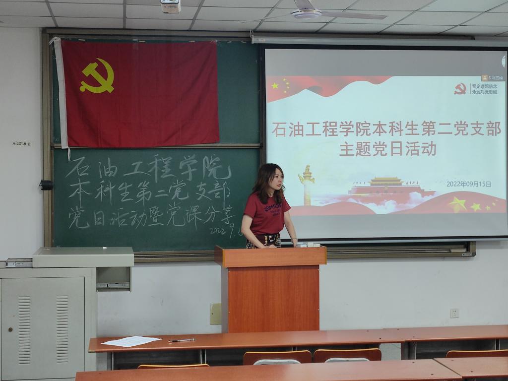 (通讯员 任堂政) 2022年09月15日下午六时许,永利3044集团官网本科生第二党支部于A-201召开九月党日主题活动。本次会议由支部冯贯榆同志主持,支部31名本科生党员、党委副书记刘娥参会。
