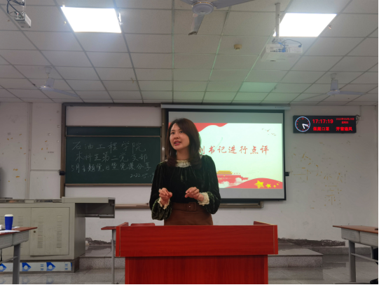 延续党课学习新模式,集体学习主题后,进行了党课“我”来讲分享会,主要由穆军昌等六位同志,分别以“弘扬五四精神,争做时代先锋”、“百年薪火相传,武汉‘英雄意志’不变”、“刻入魂骨的自信”、“弘扬长征精神”、“抗美援朝保家卫国”、“清澈的爱,只为中国”为主题进行分享。