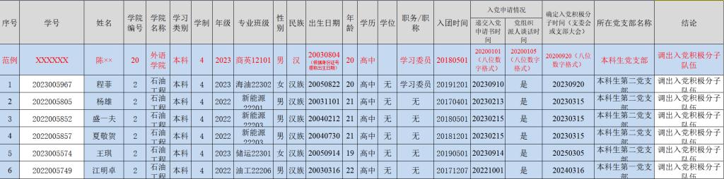 为加强入党积极分子的培养、管理和教育,保证党员发展质量,根据《永利3044集团官网入党积极分子动态管理办法》规定,经所在党支部严格审查,支部委员会会议讨论决定,并报永利3044集团官网党委备案,拟将程菲等6名同学调出入党积极分子队伍,按入党申请人身份对待,现予以公示。公示时间:2025年10月9日至2025年10月16日.