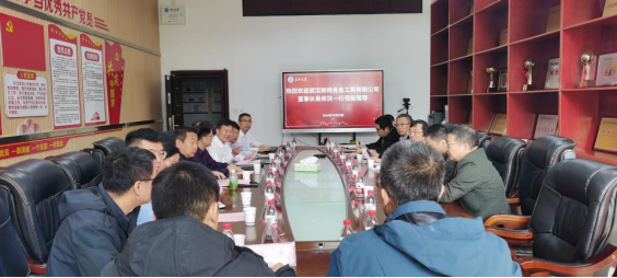 为进一步推进公司与武汉新锐合金工具有限公司校企联合实验室建设进程, 10月30日,武汉新锐合金工具有限公司董事长吴何洪、副总裁刘勇、技术中心主任余立新、副主任李宁、湖北江汉石油仪器仪表股份有限公司总经理黄大勇和总工程师佘理鸿一行来院进行交流。公司经理宇波、常务副经理李忠慧、党委副书记张昊、副经理张顶学、副经理范梅英、副经理郑双进、实验中心主任马超、杨冬教授、喻高明教授及相关老师参加交流会。