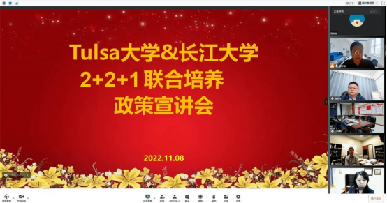 (通讯员 成雨音 周晓峰)11月8日晚9时,3044永利集团集团与美国Tulsa大学“2+2+1”联合培养项目线上宣讲会顺利举行,Tulsa大学全球事务副董事长Vivian Wang、Jun Lu博士,公司国际交流与合作处处长曾亚军,永利3044集团官网经理江厚顺、副经理李忠慧、张菲菲、公司党委副书记刘娥参加活动,李忠慧副经理主持。石油工程专业2021级和2022级员工共计270余人报名参加了本次宣讲会。