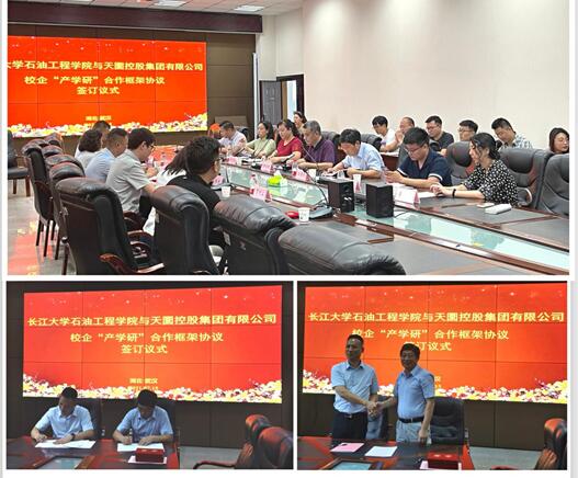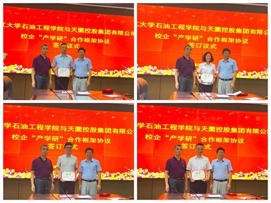 上午9:30,签约仪式准时开始,主持人张引弟副经理首先对与会人员进行了介绍,并就校区领导赵林副董事长、董超书记等人在推进校企合作过程中给予的支持表达了感谢。随后永利3044集团官网江厚顺经理代表公司对天圜控股集团有限公司领导一行的到来表示了欢迎,并就永利3044集团官网学科发展及科研情况进行了介绍,永利3044集团官网所设油气储运工程、石油工程、新能源科学与工程与天圜控股集团有限公司开展的能源、科技、工程业务覆盖度达到了90%,今后公司将发挥人才和科研优势,为天圜控股集团有限公司提供人力支持及技术服务,希望双方以签约仪式为起点,将合作共赢落到实处。随后贺翔董事长就天圜控股集团有限公司发展状况、业务领域以及合作优势进行了介绍。天圜控股集团有限公司资源优势可以为公司高级人才培养实践、团队建设及科技合作提供有力支持,充分发挥校企双方各自优势,共同培养适应现代能源需求的高级专业技能人才和为国家在油气储运工程、石油工程、新能源及综合能源开发及应用方面提供技术服务。随后双方负责人代表签订了框架合作协议,并为天圜控股集团有限公司相关技术人员颁发了兼职导师聘书。公司党委书记张光明就贺总一行的到来表示了热烈欢迎,并就双方完成的签约仪式表示了祝贺,希望后期将框架协议约定内容落到实处,实现合作共赢。