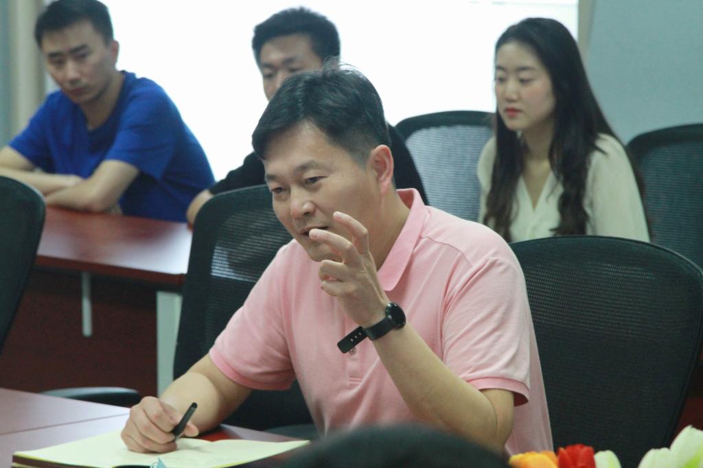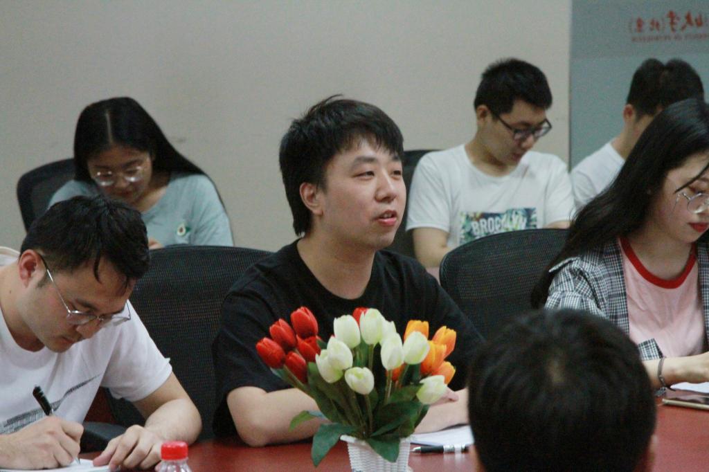 然后,江厚顺经理从公司团队引进、人才培养、教学改革、团队建设、科学研究及平台建设等方面,详细地向在座的员工介绍了母院近年来突飞猛进的发展,并邀请广大员工毕业后回母校工作,助力母校、母院“双一流”建设。