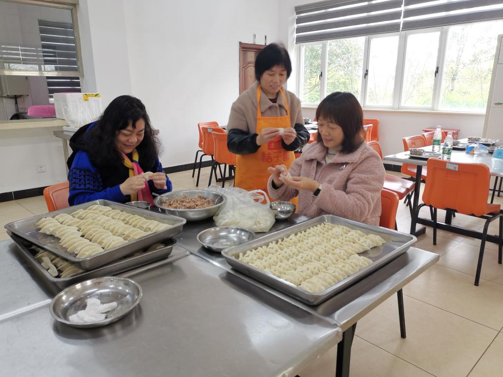 (图12.韩书记(左一)和艾主任(右一)为员工亲手包饺子)