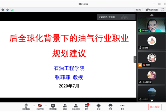 接下来是张菲菲教授以“后全球化背景下的油气行业职业规划建议”为主题向大家讲解了目前石油行业的前景以及未来发展形式,张菲菲的讲解幽默风趣,用事实告诉同学们,“石油不是夕阳产业,相反,行业前景一片光明,但你必须有独当一面的能力,研究方向和导师比公司排名更重要,尊重内心,选你所爱,然后爱你所选。”