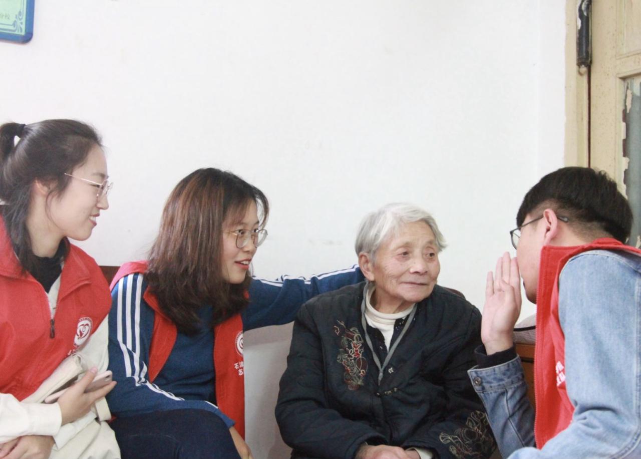 活动当天下午,在队长的带领下,大家抵达了蔡甸区敬老院。可能是第一次与陌生的长辈接触,各位同学都显得不知所措,不知道该如何面对老人们,该如何与他们沟通。但是老人们仿佛看出了大家的心思,对于我们的语无伦次很宽容,反而安慰我们不需太紧张,随意就行。逐渐地,大家也不那么拘谨了,放松下来和老人们愉快地交谈起来。所涉及的话题从敬老院的居住环境,老人们的家庭背景,直至他们丰富的生活阅历,而我们也向老人们介绍了自己在大学的生活情况。通过互谈,我们了解到老人们的晚年生活并不寂寞,子孙们会时常带来各种礼品孝敬他们,许多员工志愿团队也来探望他们,社会各界也对老年人关心有加。尽管老人腿脚不便,但他们仍是热情地带我们参观敬老院全貌,介绍它详细的背景,还给我们看了他们逢年过节、娱乐运动的照片,展现安康的生活……临走时,老人还目送我们离去,更让我们倍受感动。