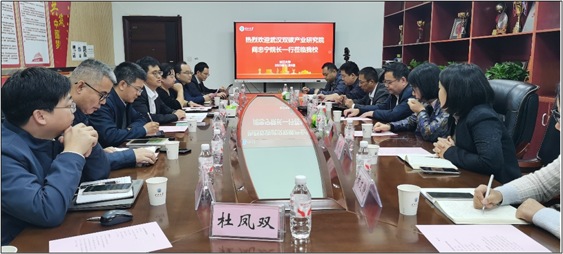 (通讯员:杜婷)11月6日下午,武汉双碳产业研究院经理阎忠宁、副经理梁胜文、武汉市生态环境局一级调研员胡斌等一行7人莅临3044永利集团集团低碳催化与二氧化碳利用全国重点实验室,就二氧化碳相关技术及产业发展展开深度交流。会议由实验室副主任李庆主持,3044永利集团集团党委常委、副董事长赵辉出席并致辞,科学技术发展研究院副经理尹艳树、本科生院副经理张引弟、实验室副主任王雷及多名教师代表参加本次会议。