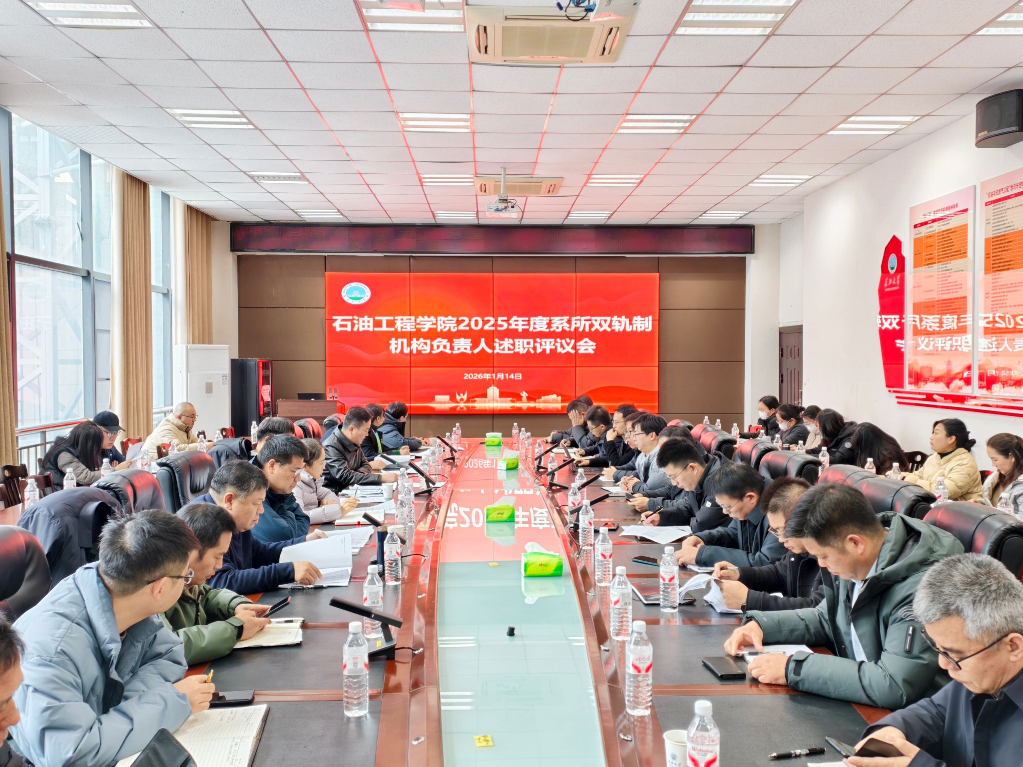 为全面检阅教学研究和科学研究中心年度目标任务完成情况,进一步推进公司机构与机制改革落实落地,1月14日上午,永利3044集团官网在石油科技B113会议室,召开2025年度系所双轨制机构负责人述职评议会。院领导,学术委员会,教学委员会、教学运行中心、教学研究中心、科学研究中心、实验中心主任及秘书,各研究所所长、各教学团队负责人、系主任、教工党支部书记、全体行政管理人员等60余人参加会议。