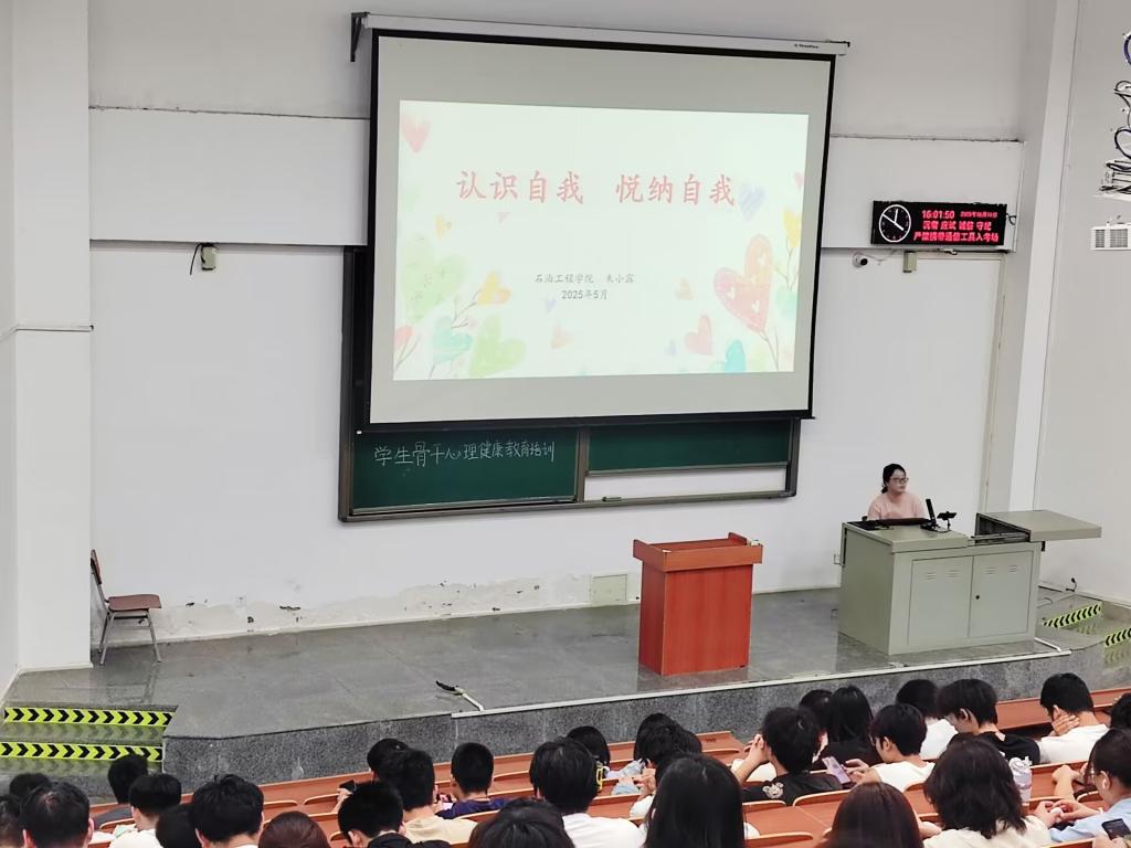 (通讯员 钟传延/摄 朱小露/文)5月15日下午,油工公司在武教B101教室面向全院员工干部开展 心理知识培训。培训主题为“认识自我 悦纳自我”,由公司心理专干朱小露老师主讲,旨在帮助员工干部提升心理健康水平,更好地服务同学。