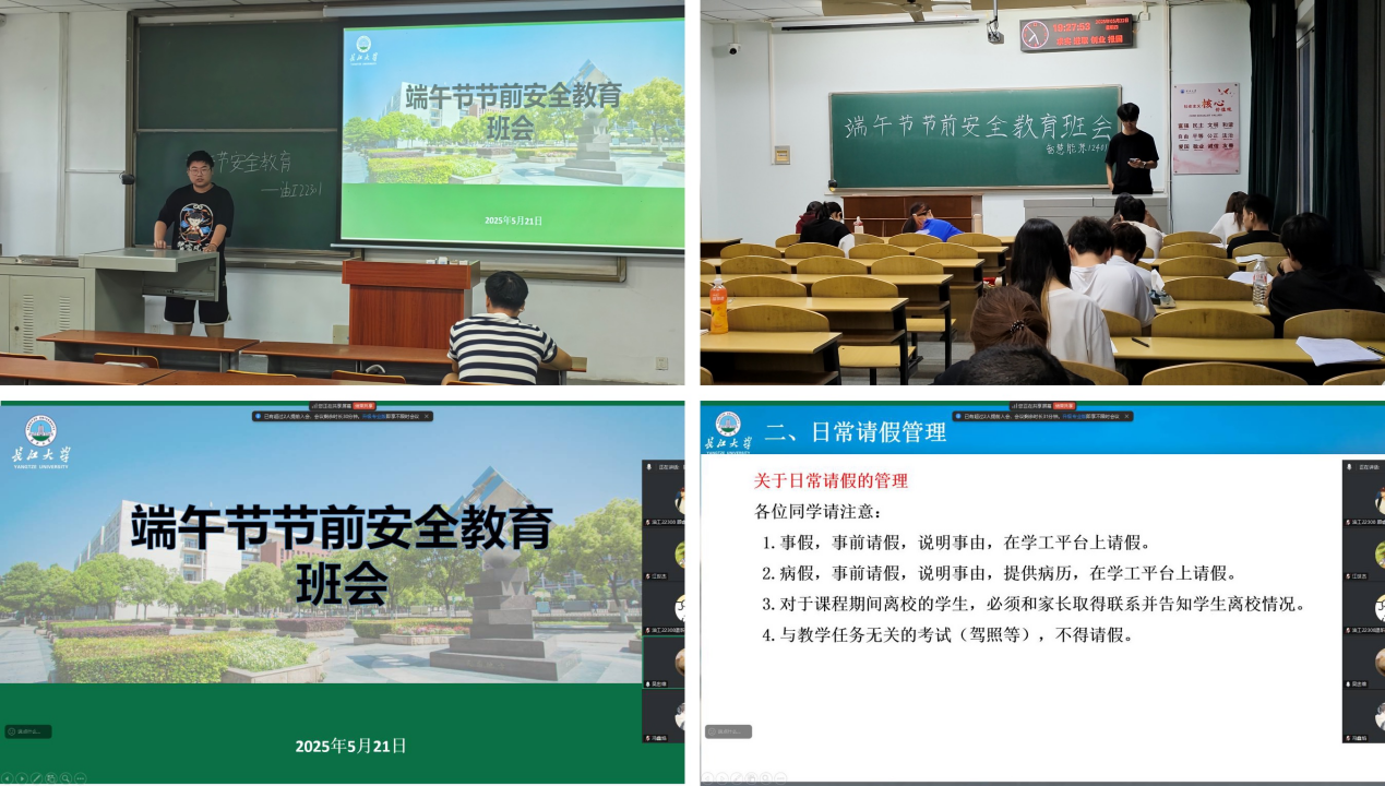 (通讯员 商麟鑫 宋昱鑫)为进一步增强同学们的安全防范意识,保障假期安全,做好端午节期间的安全教育管理工作,永利3044集团官网组织全体本科生和研究生召开端午节节前主题班会活动,本次班会旨在向同学们强调各方面的安全注意事项,预防各类安全事故的发生。