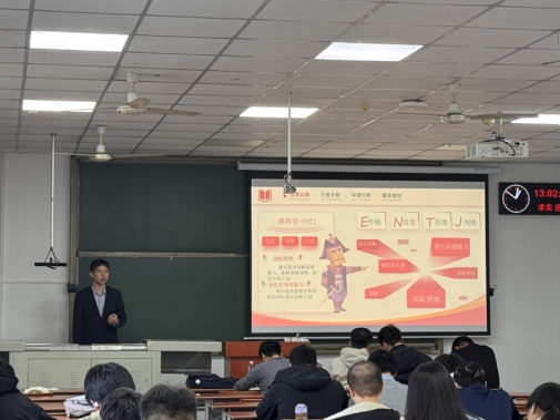 汇报环节中,选手们充分展现了个人规划与职业愿景。成长赛道的粟思睿同学结合大学学习生活、科创实践与志愿服务经历,分享了个人成长路径,表达了“科创报国”的坚定志向。就业赛道的陈鑫同学则围绕就业方向与未来发展,勾勒出清晰的职业蓝图,赢得了评委老师的一致好评。